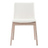 An angled seat and mid-height backrest create a leisurely atmosphere in the dining room. The Deco dining chair is made from a solid white oak frame with a comfortable vegan leather seat. Elevate the ambiance of your next soiree dinner with this contemporary piece of dining room furniture.