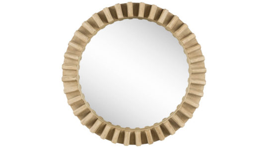 Crafted from pine wood and finished in a light brown tone, the Sprocket Mirror III is a stunning round mirror with cog-like grooves on the frame. Spanning 35″ in diameter, this stylish wall mirror looks gorgeous by itself or when grouped with others in the Sprocket Mirror or Cog Mirror series as a collection, especially in spaces based on the Industrial design styles.